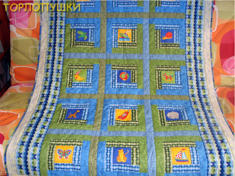А потом забыла, что еще не хвасталась. Вот исправляю упущение, одеяльце для Роди. Топ американский хлопок, внутри синтепон, бэк - жатая российская ткань из закромов Родиной мамы.