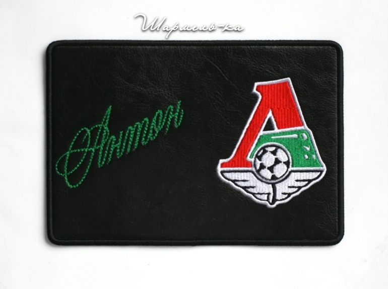 Вышитая мужская обложка на паспорт "Футбольный клуб Локомотив"