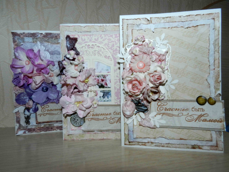 СкрапбукингДобрый день! На улице сыро и промозгло, а так хочется тепла! Насмотревшись на прекрасные открытки Тани Дудкиной, я сделала открыточки ко дню Матери...нежные,добрые, светлые! Пыталась передать свое восприятие материнства..Смотрите, какие получились малышки)))