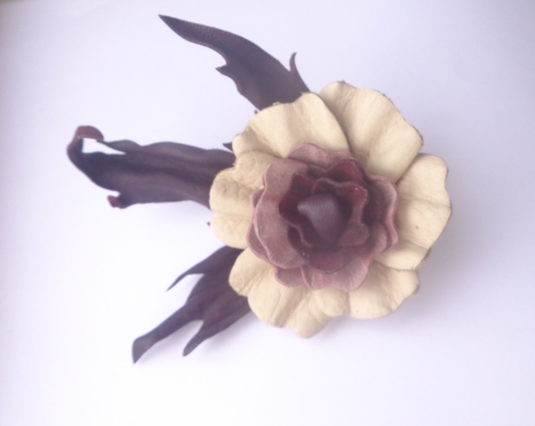 Изделия из кожиОчень вдруг захотелось чего-то кожаного и красивого.Родилось два цветка,один диаметром 5см,второй 7см.