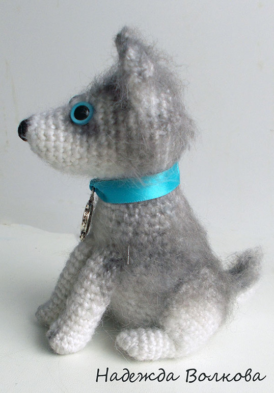 Игрушечный мир - животныеСвязала на заказ для Санечка еще одного Хаски, рост 14 см, самостоятельно сидит. Пряжа мохер.