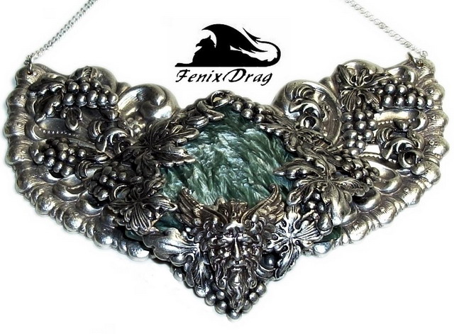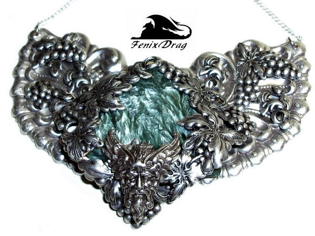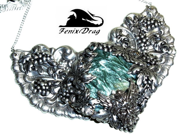 клинохлор (серафинит), винтажная латунь в покрытии серебром