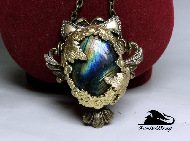 Кулон "Мериз" с натуральным лабрадоритом в стиле Винтаж (Винтажный, Старинный, под старину)