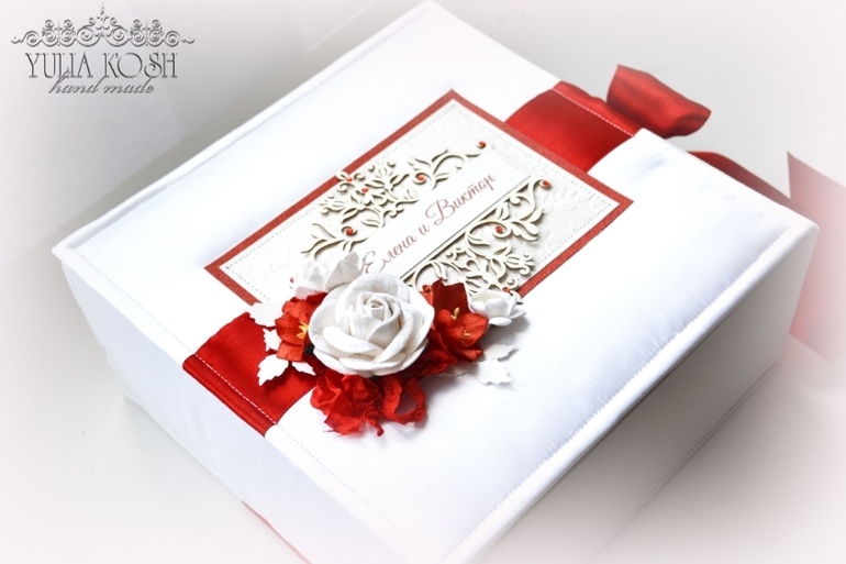 СкрапбукингЯ уже делала подобную в зеленом цвете и вот попросили сделать в красном)))Получилось очень красиво… прям огонь)))))) Хотя после первой коробки, которую я долго делала… зарекалась подобные шкатулки не делать))))