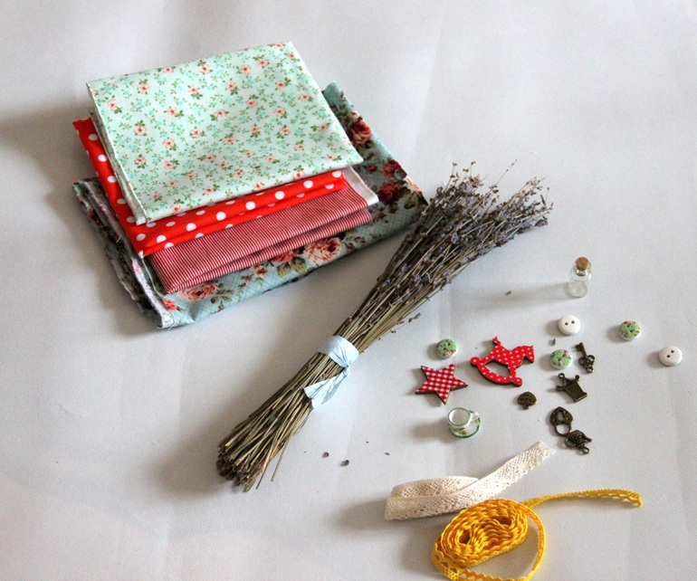 Это мне, все мнеее!!! Сухоцвет лаванды, тканьки чудесные, и совершенно очаровательные маленькие штучки! Даже свекровь моя в восхищении, чего только не делают, говорит)))