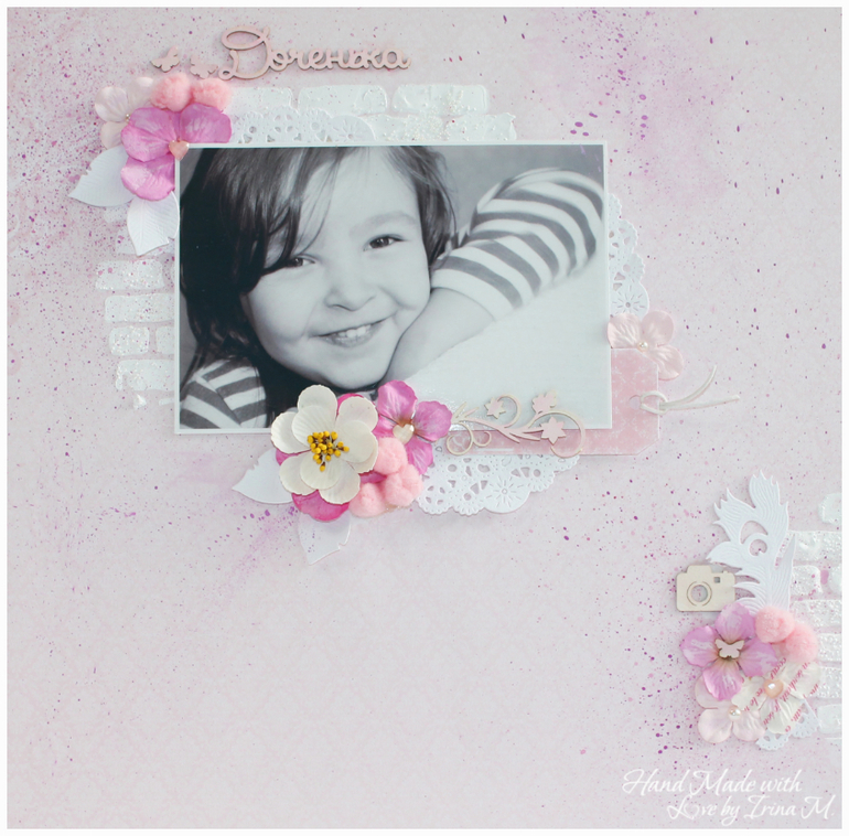 А фото это было сделано, когда я фотографировала свои работы, а дочка пришла и попросила меня сфотографировать её, ну я и шелкнула несколько кадров и забыла про них благополучно, а когда разбирала отснятый материал, то увидела это фото и влюбилась в него так, что решила непременно его заскрапить:)))