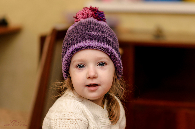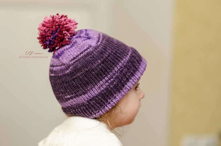 предыдущая зимняя шарка Дарины была покупная. Она из нее выросла естественно. Так что эта шапка связана по необходимости. Голубая, что недавно показывала — тоненькая совсем, на весну-осень.