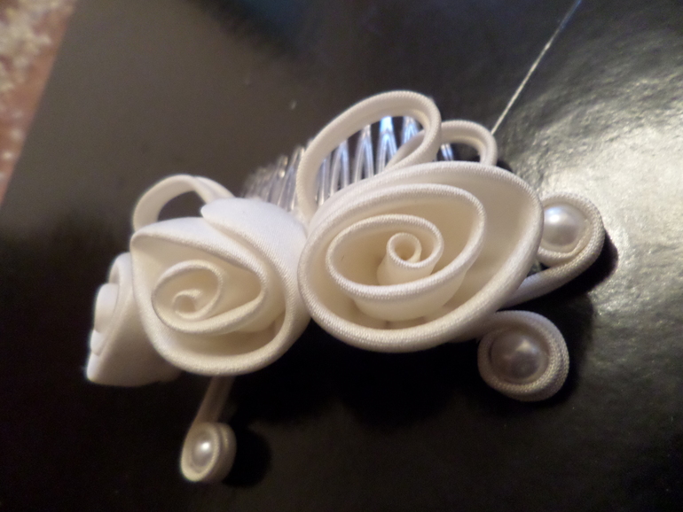 В-четвертых, свадебные аксессуары - венок большой (на гребешке), венок маленький (на гребешке), букетик.