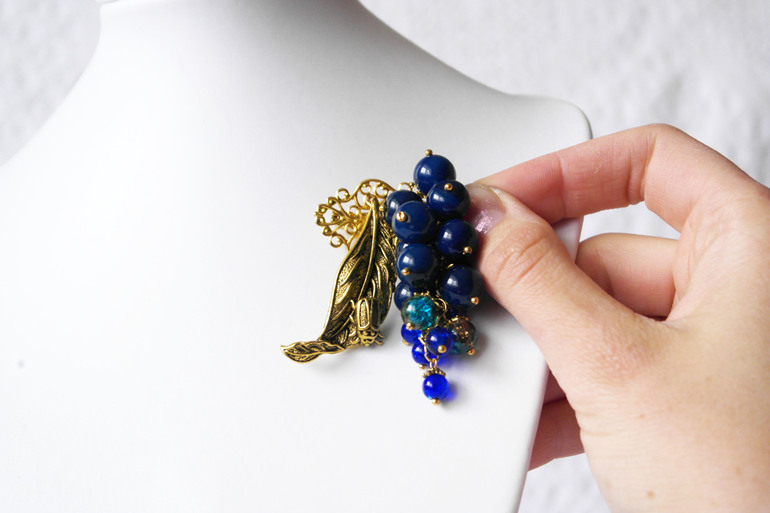 Брошечка с агатом, на шарф. Синие сладкие ягодки))