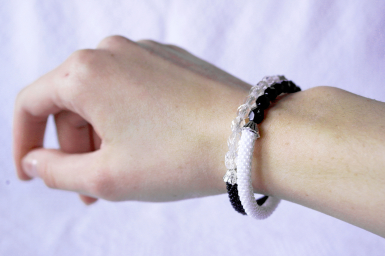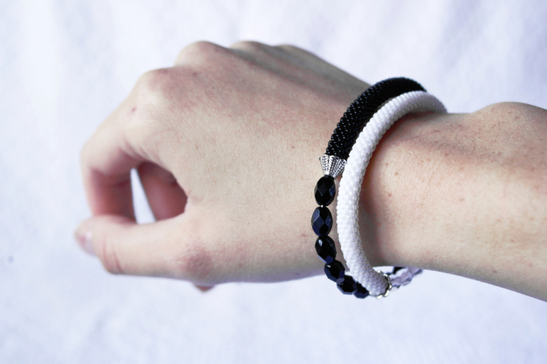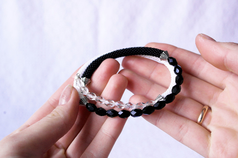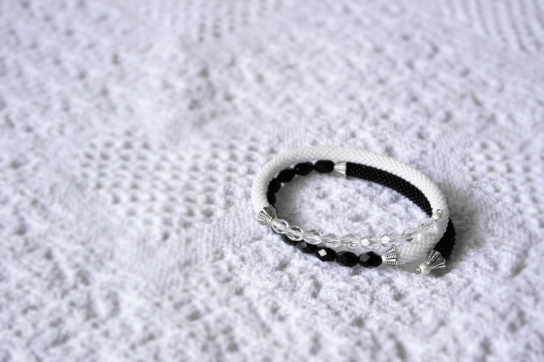 Классический Инь-Ян - чешский бисер, чешские бусины, на посеребренной проволоке.