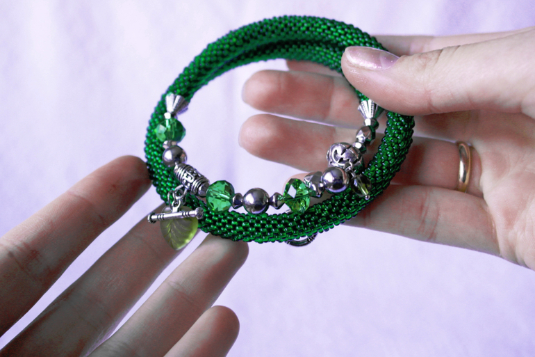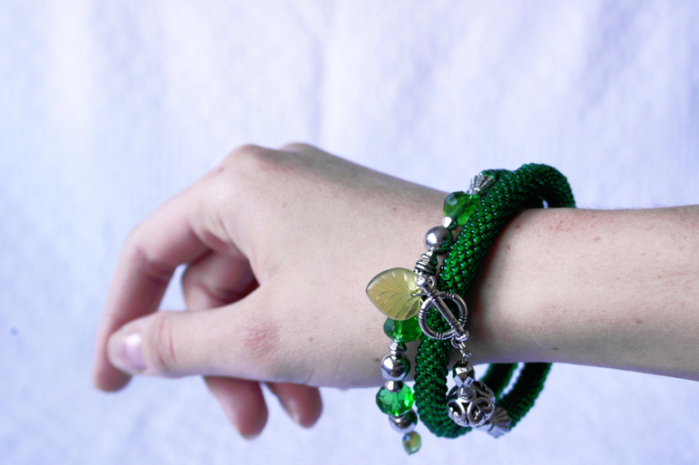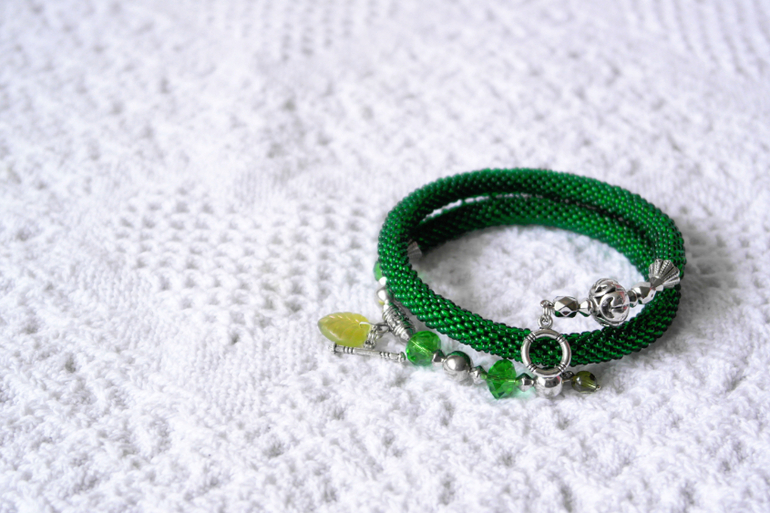 Браслет "Веточка". Он шел в пару к многорядной шамбале сочного зеленого цвета, но на фотографиях они так и не встретились.