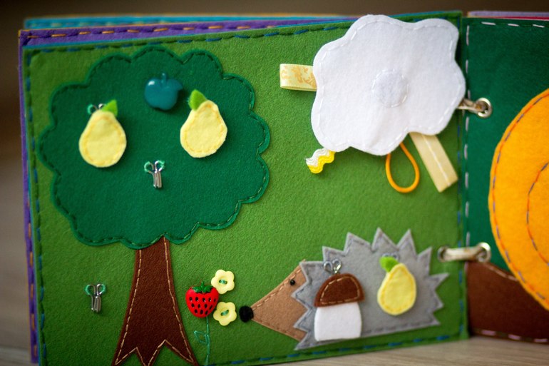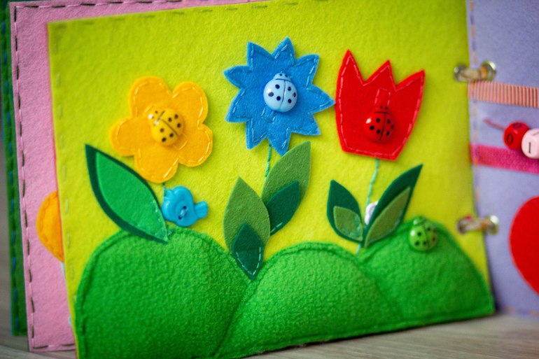 Все цветочки на пуговках, под листиками сюрпризики, в холмиках: шелест, синтепон, бусины. Основы застегивания/расстегивания пуговиц.