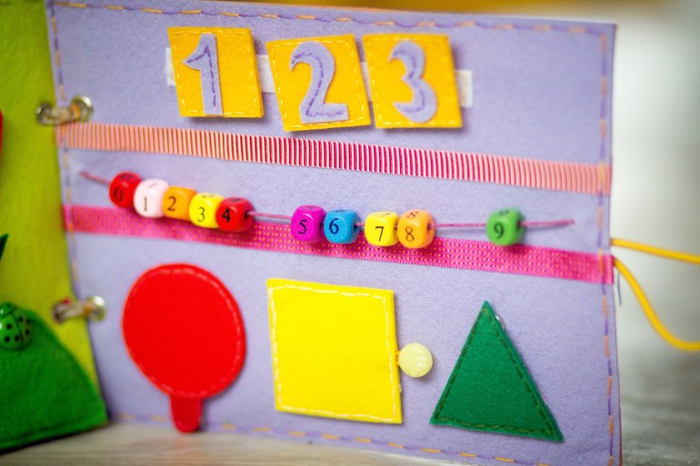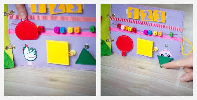 Счет до трех, счеты, геом.фигуры на 3-х видах застежек: пуговка, кнопка, липучка.