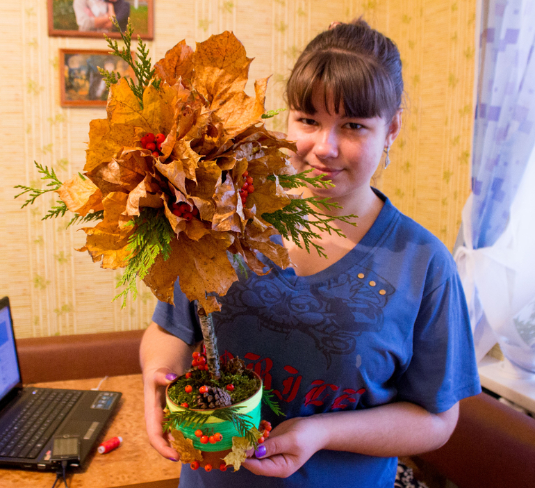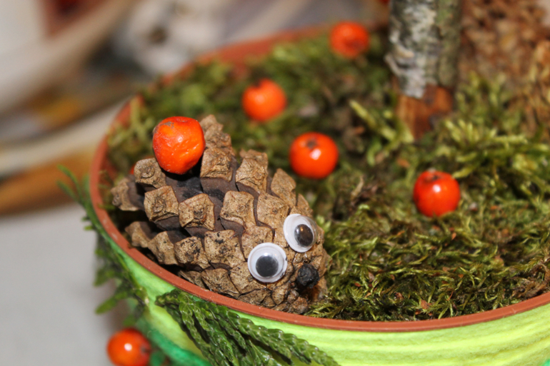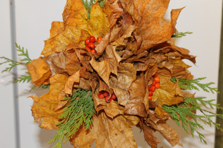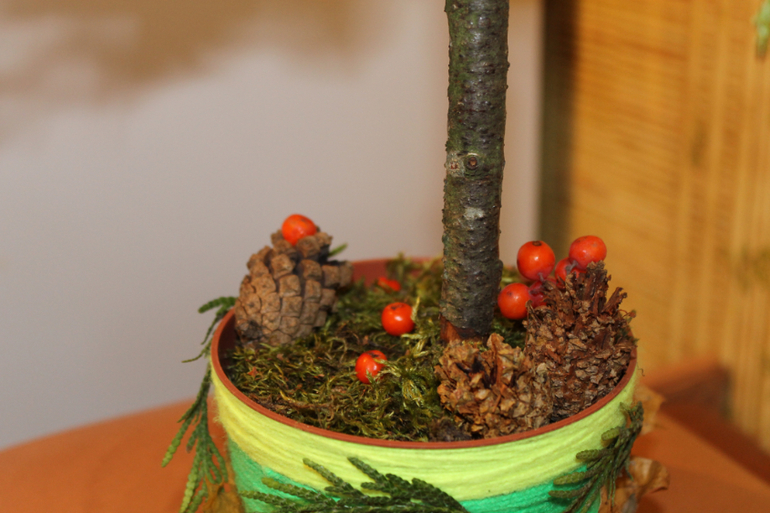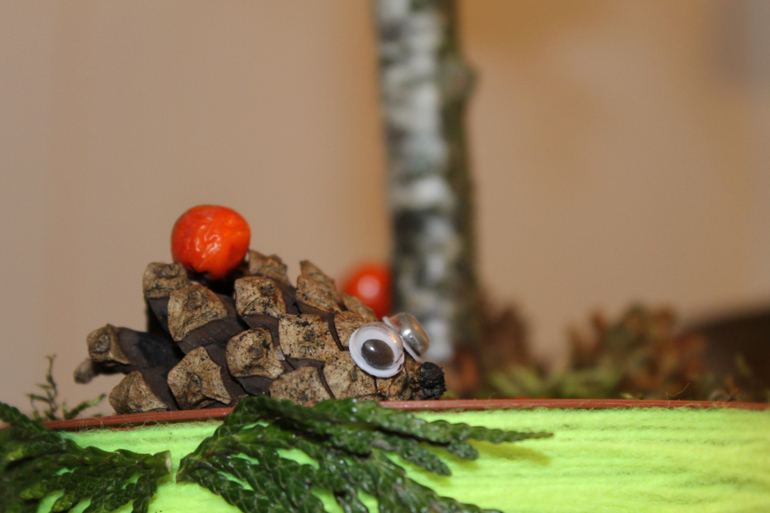 Сегодня ходили собирать остатки листьев под инеем и всякие веточки,шишечки,мох,рябину...Все-таки поздновато уже для осенних подделок