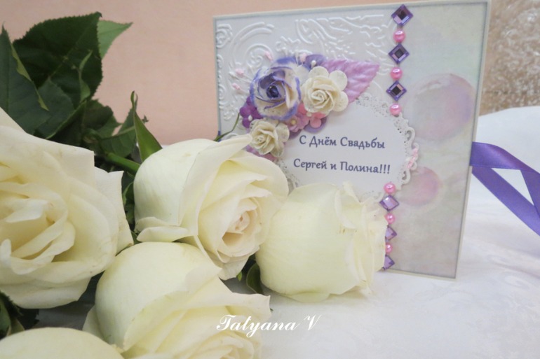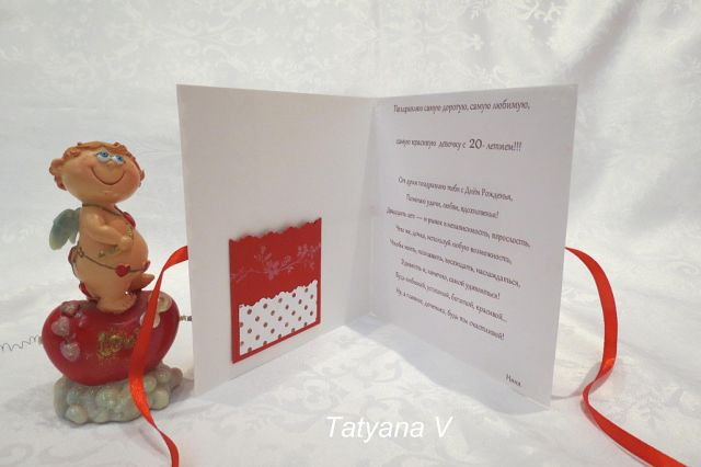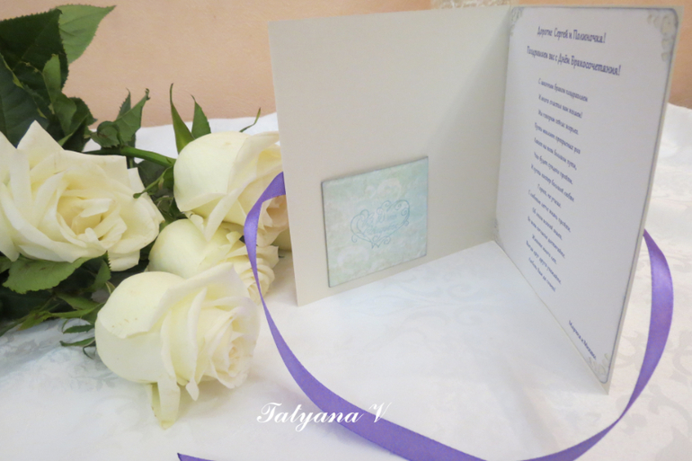 На свадьбу заказали открытку с кармашком для денег и поздравлением .