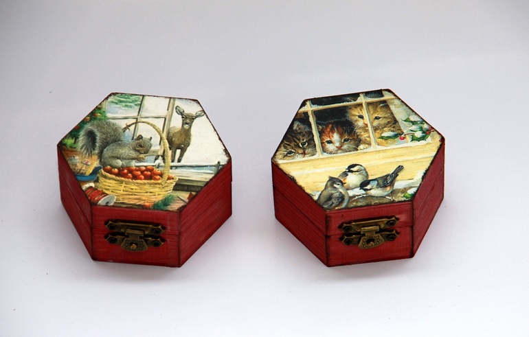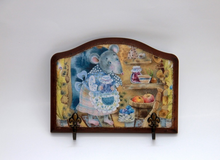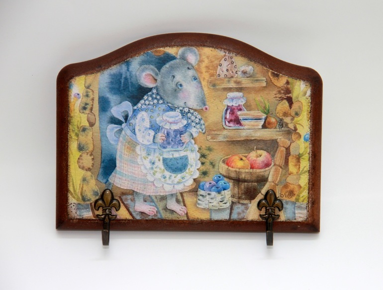 ДекупажПозаимствовала у Янины Монаховой картинку с мышью, мышь знатная, хозяйка и умница! Получилась небольшая ключница: