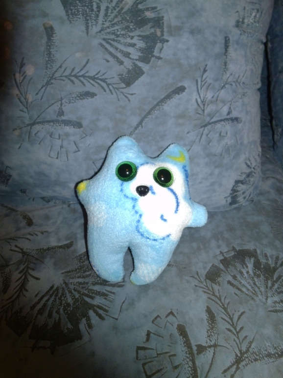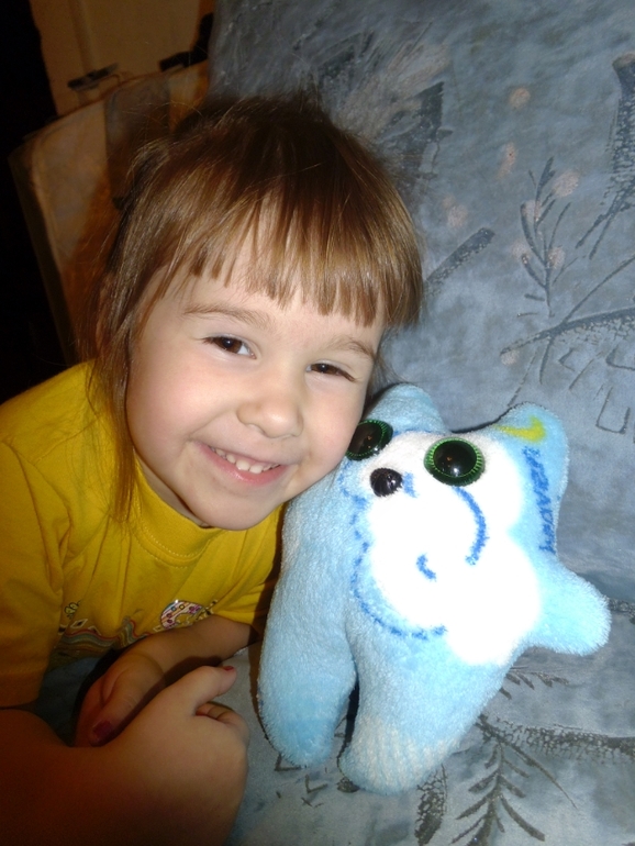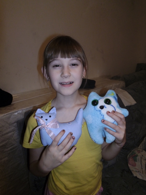 Игрушечный мир - животныеЗаразила я своими игрушками дочку. Теперь и она на каникулах шьет игрушки. Вот вчера( правда не без моей помощи) сшила. Толстяка можно сказать я сшила ,она набивала только. А уж вторую только помогла зашить шов в конце и нос вышить. Как вам Решила дочка разгрести запасы моих залежей ткани.Толстяк из велсофта,такой мягкий-мягкий получился. Глаза покупные-большеглазики.,нос тоже купили. А вторая кошка Муся попроще,так сказать домашняя.