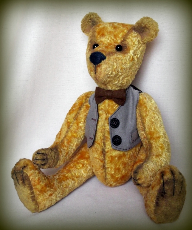 Игрушечный мир - животныеПопросили сшить друга для Маши - верного, надежного... Вот получился такой серьезный Потап)) Сшит из винтажного плюша, тонирован масляной пастелью. Лапы на нитяном креплении, а голова - на катушечном)). Под катом много фото - его и его подружки)))