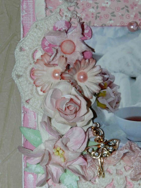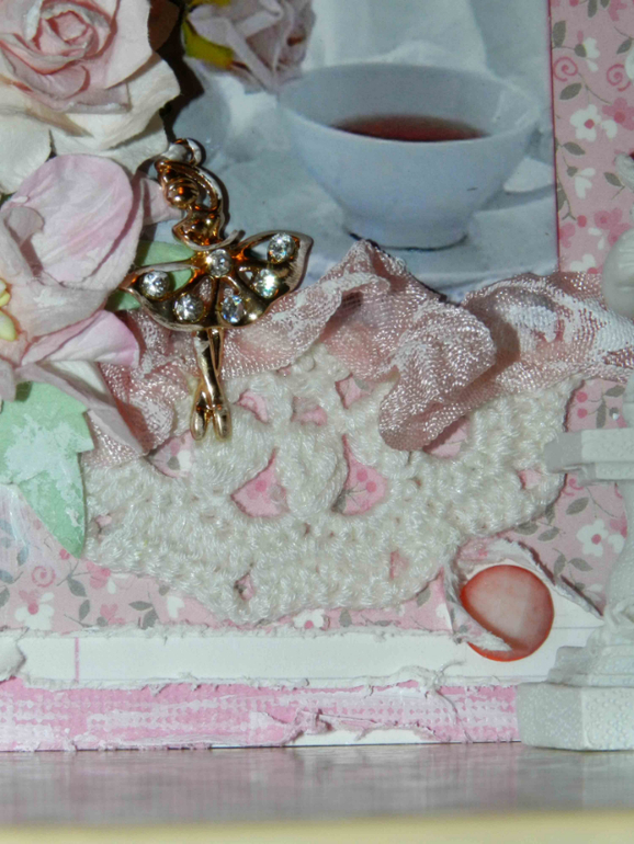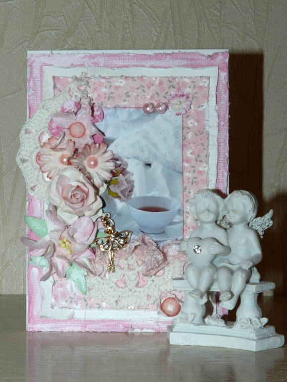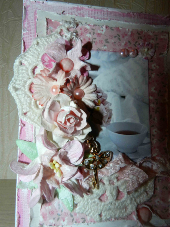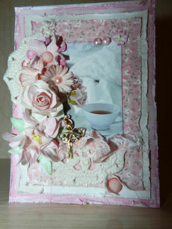 Открыточка 10 на 15. Цветочки, граненные камушки, ленты, кружево!Смотрите))