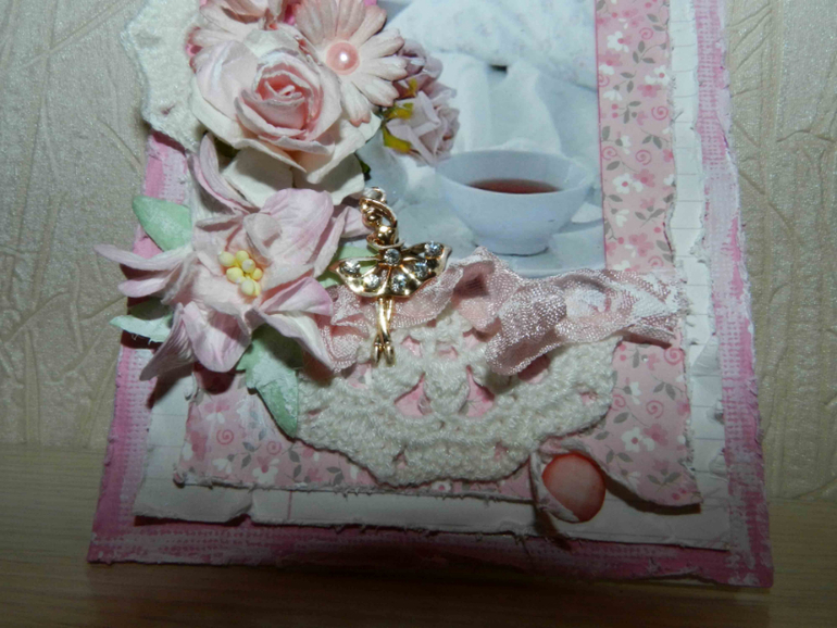 СкрапбукингДобрый день, Девочки! Сегодня хочу показать открыточку...нежную, воздушную, такую...клубнично-сливочную))) Я так подсела на открытки!Это такое волшебство!!!За окном серость, а на открыточках цветы, бабочки, нееежность!А началось с того, что была у меня металлическая подвесочка в виде балерины, со стразиками!А дальше все само сложилось)))