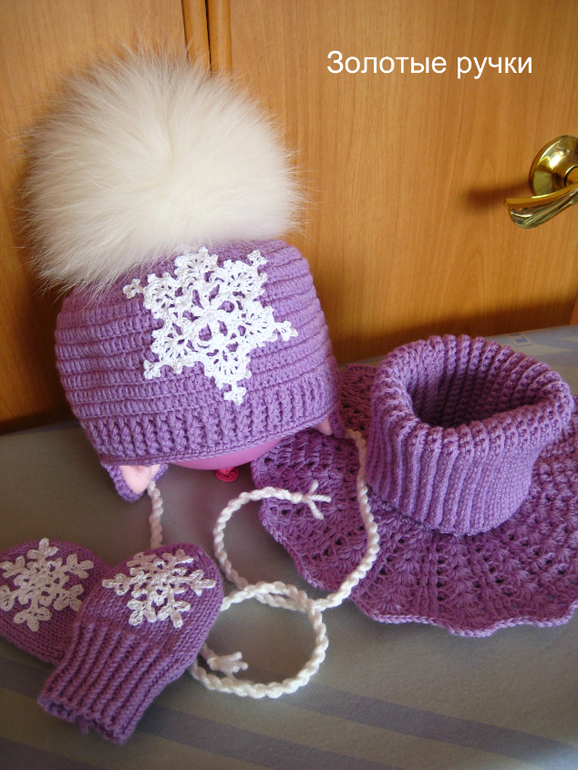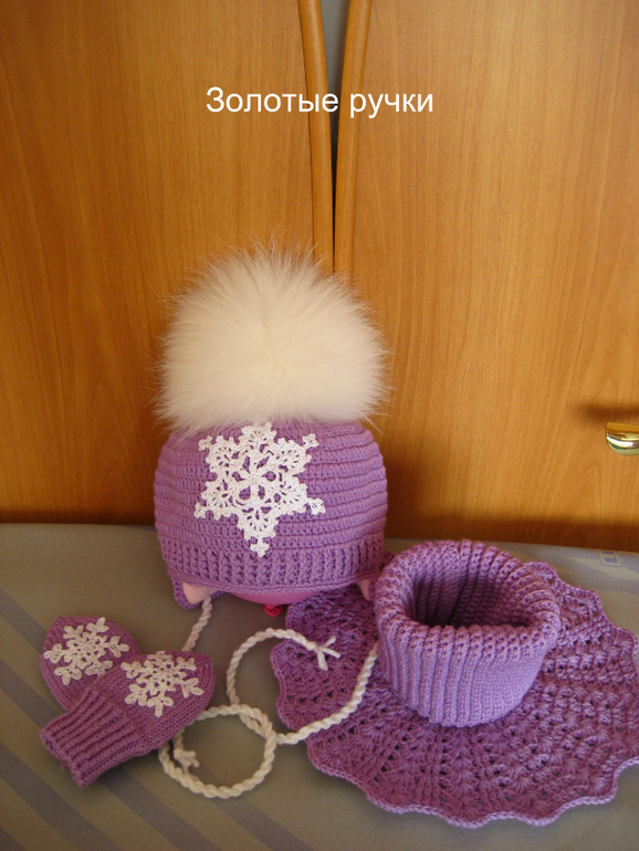 Вязание крючком (РАБОТЫ И СХЕМЫ)Связала вот такой вот комплект:шапка на флисе,манишка и рукавички. Пряжа Adelia Rachel.Больше фото под катом...