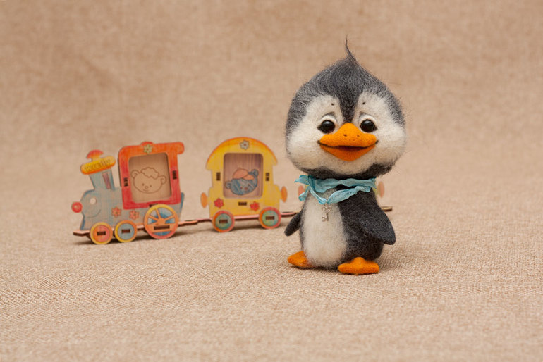Размерчиком мы около 16 см, сваляны из шерсти, распушены иголочкой и ...О, моя гордость и бЯда ))) Славик вторая игрушка с головой на шплинтовом креплении, третий раз будет точно легче ;)
