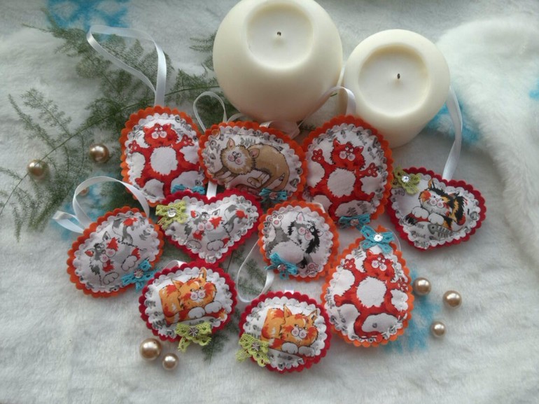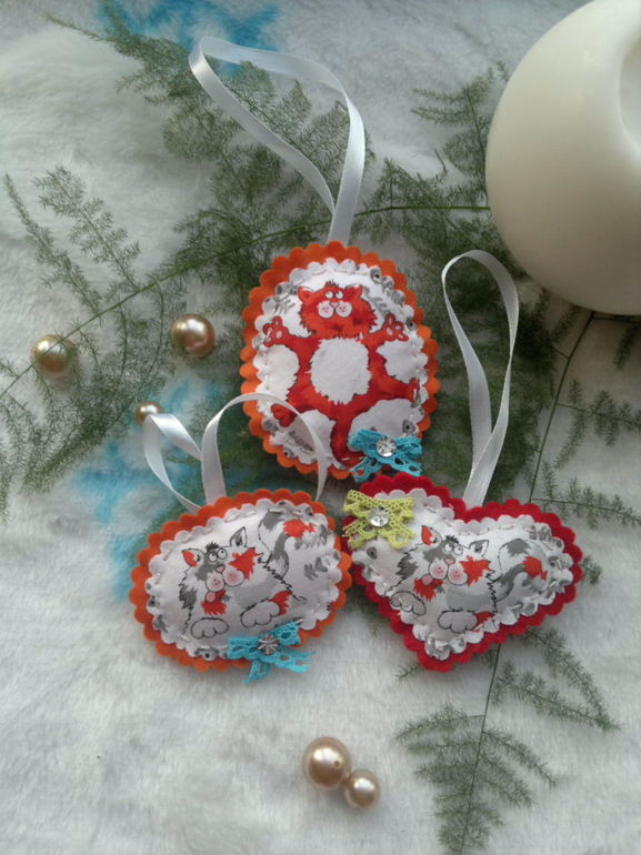 ФетрЯркие, праздничные наборы елочных украшений из фетра и хлопка "Веселые котики".