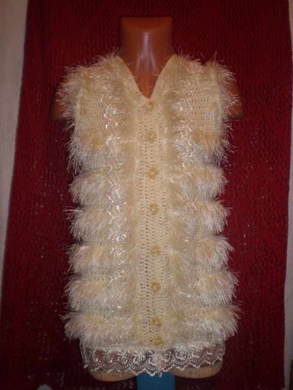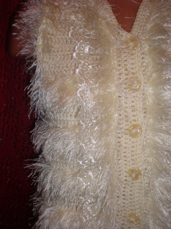 я эту пряжу только в детских вещах люблю,вязать конечно крючком сложновато,не видно петель.А машина не хочет брать ее ворс длинноват,да и тяжело уже возле машины стоять вязать на почти 9 месяце беременности,а руки чешутся что -то сваять.