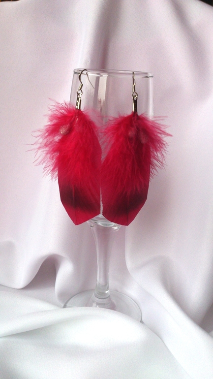 Прошу под кат, много фото) 1. Серьги "Монпасье", полностью ручная работа, включая крашение перьев.
