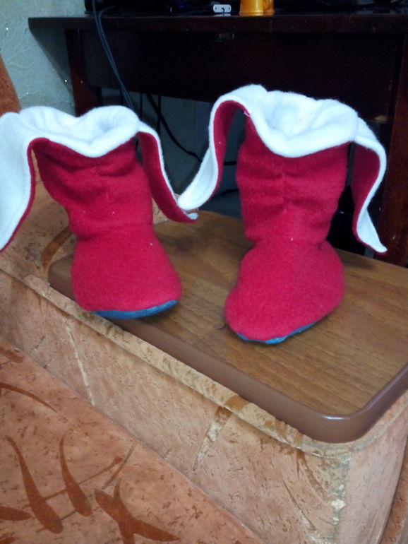 Шитье одежды, выкройки, ремонт одежды, шторы, швейные машины (уже приобретенные)Вот и я решила попробывать сшить тапульки-зайчики))) Только вот наверное хвостика им нехватает))) Надо пришить))) Не судите строго, это мои первые тапульки. Но доце нравиться))))