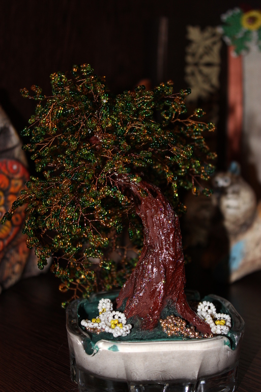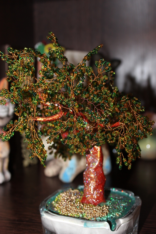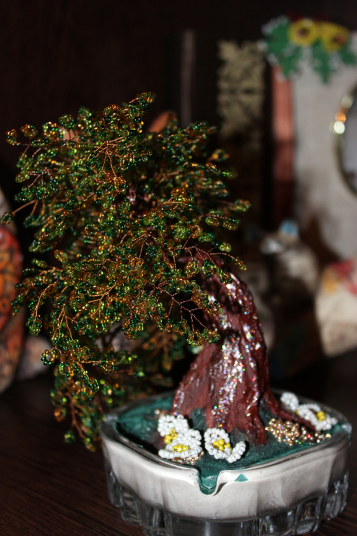 Бисер. Бисероплетение. Украшения из бисера.Сплела два деревца в подарки, вначале хотела одно, но потом мне показалось, что 195 маленьких веточек это много для одного и поделила пополам. Плела без мастер классов. Правда хотела более желтые, как осенние, а получились более летние, с бисером не рассчитала.
