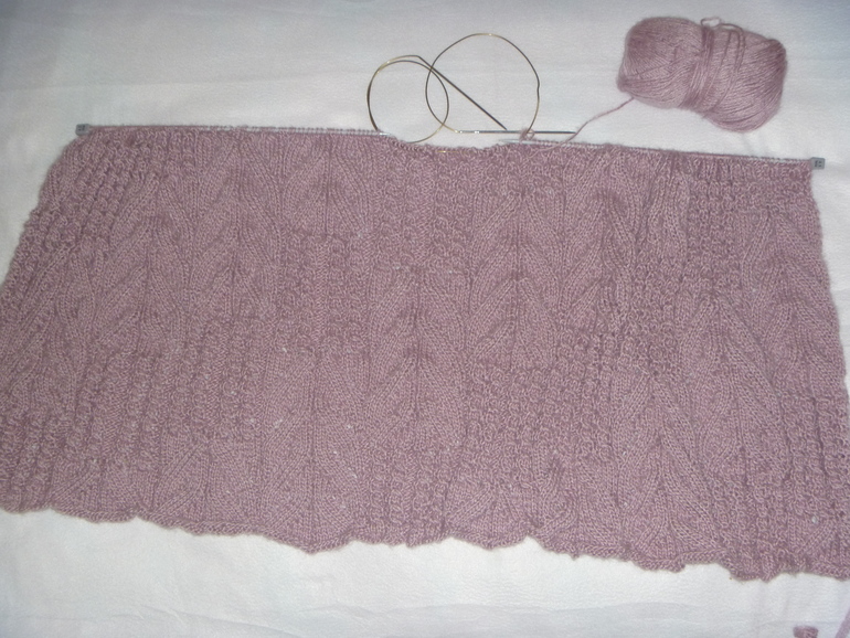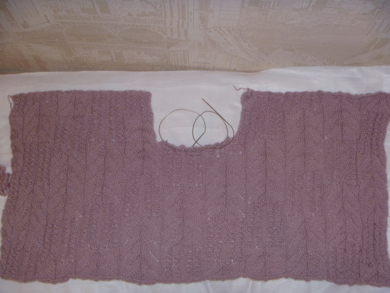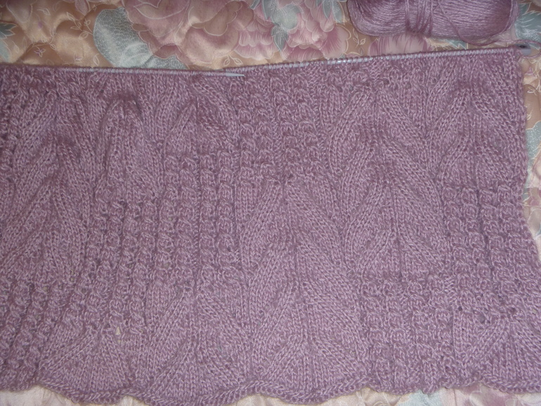 Связала образец, посчитала нужное количество петель. На 46р-р у меня получилось 263 п. + 2 кромочные. Далее продолжила работу по схеме.