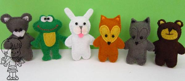 Сшила для дочки в детский сад пальчиковый театр из фетра. Воспитатель попросила пару игрушек, а я что-то разошлась. Дашка моя уже в выпускной группе, поэтому для них может и поздновато уже... Но на следующий год наши любимые воспитатели наберут новых трёхлетних малышей - вот им то этот театр точно пригодится!![]()