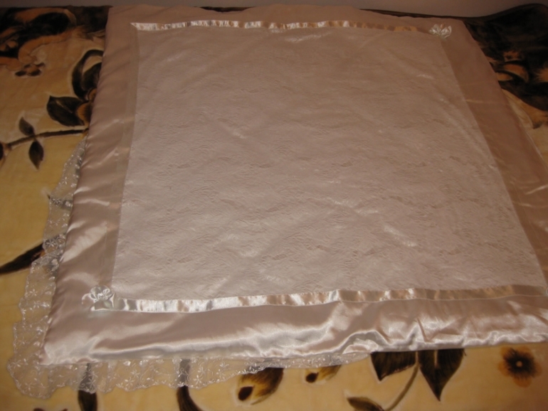 Пеленка-уголок, 100*100 см. Кружево нежное-нежное, очень приятное на ощупь.