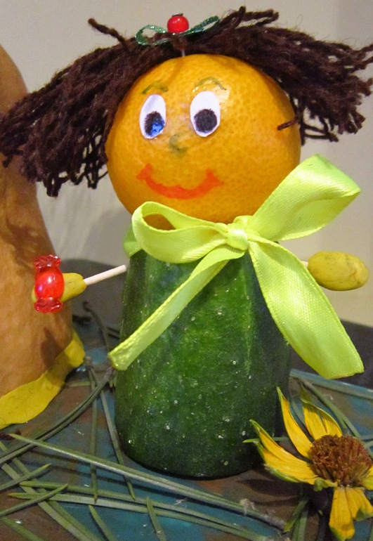 Поделки с детками.Задали в детском саду сделать осеннюю поделку из овощей. Вот такой результат совместных усилий дочери и меня получился.