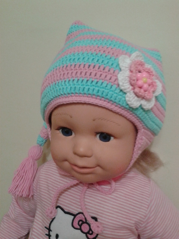 Вязание крючком (РАБОТЫ И СХЕМЫ)заказали мне колпачок на подкладе для малышки , цвета бирюза и розовой, вот что получилось.
