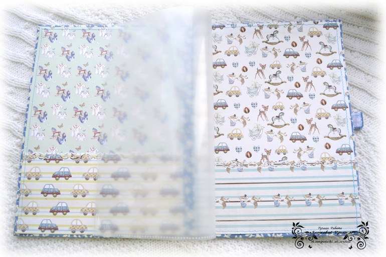 СкрапбукингПокажу вам новую папочку для первых документов мальчика. Внутри все стандартно - плотный файлик для свидетельства и кармашек для других документов.
