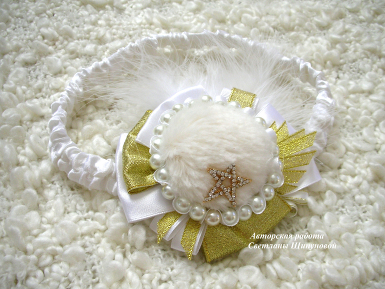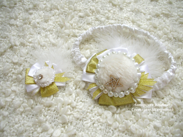 К новогодней фотосессии для маленькой принцессы была сделана вот такая меховая повязочка, а ее маме в комплектик заколочка)