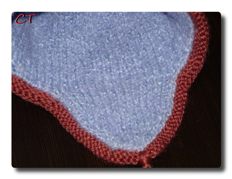 обвязываю спицами. крючок вообще не люблю. Набираю петли по краю верхней шапочки и вяжу необходимое количество рядов потом все петли закрываю и иглой аккуратно пришиваю