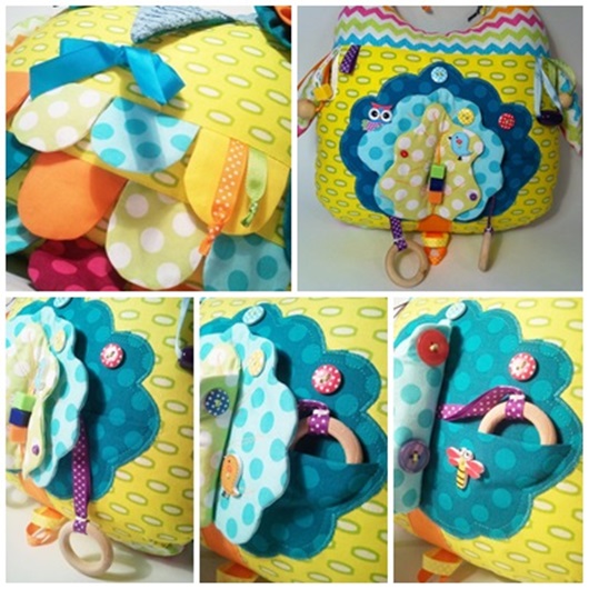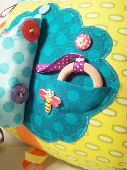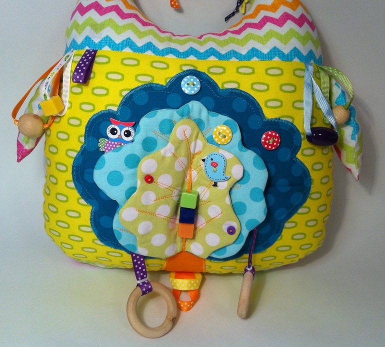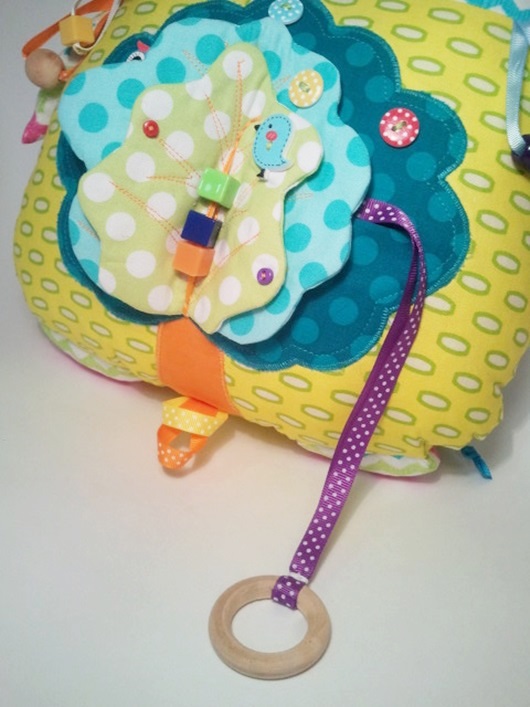 По просьбе заказчицы: яркий веселый, функциональный. И я все же склоняюсь, дабы игрушка оставалась игрушкой, поэтому совсем элементами развивающими не забиваю))