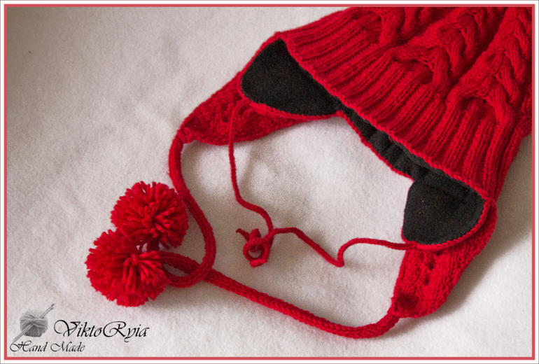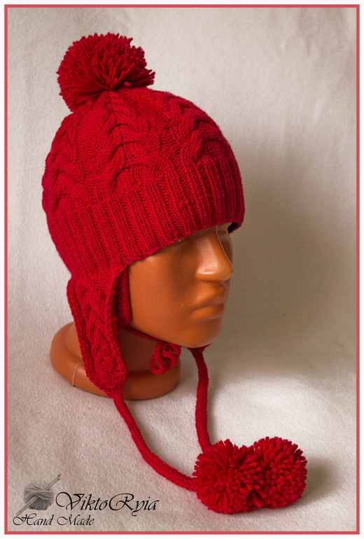 спасибо,Сэдди!!!После резинки только 2 петельки добавляется чтоб на узор хватило.Резинка 3,5 спицы,а на саму шапку 4,5Там в описании 3 размера,я вязала самым большой (Child)А ушки связаны крючком и пришиты