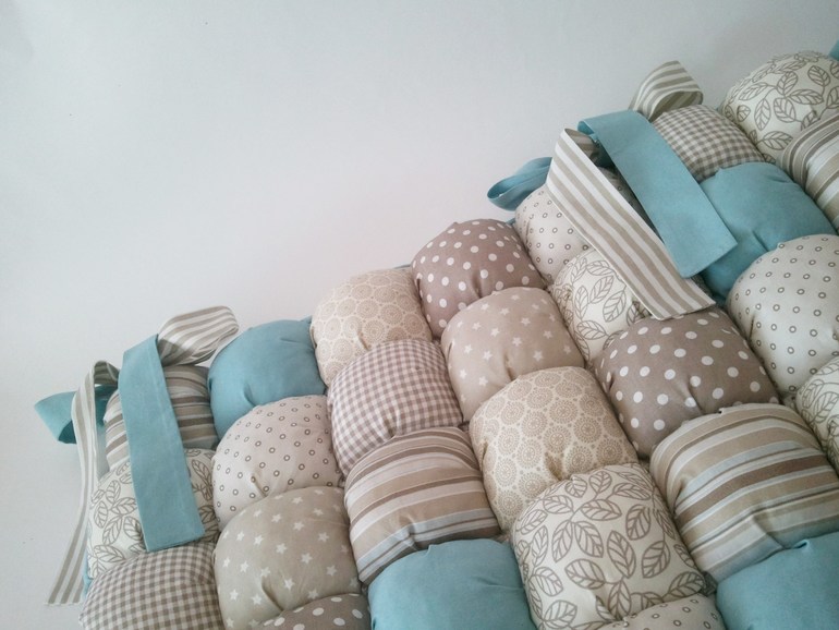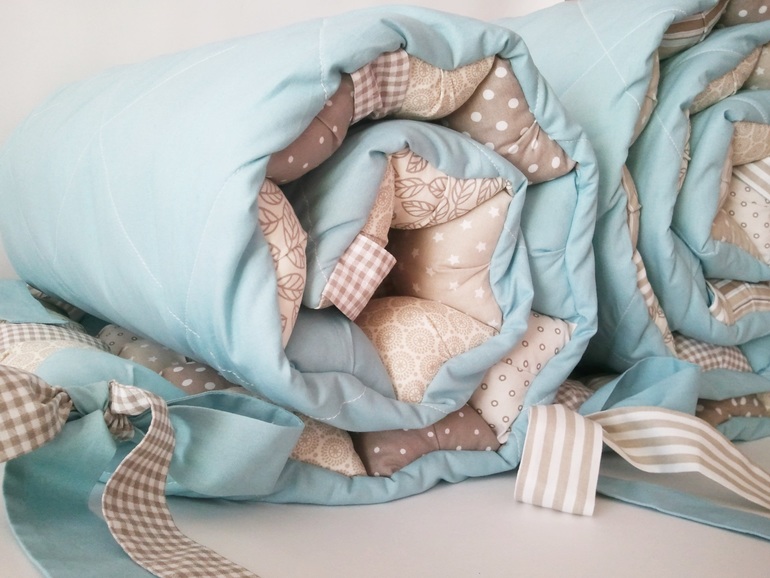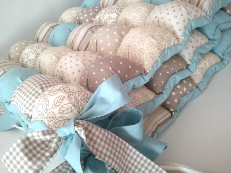 Бортики в бежево-голубой благородной гамме, очень спокойные и по-своему нежные))