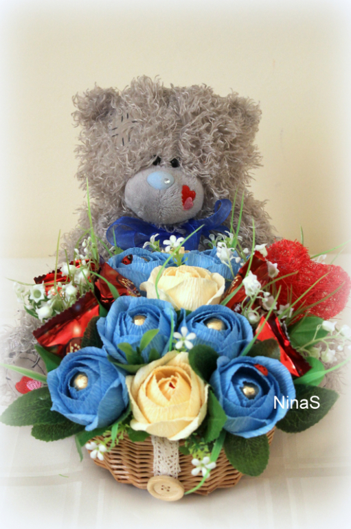 И корзиночка с мишкой для девочки. Просили синем цвете, ну друзья то голубоносые.