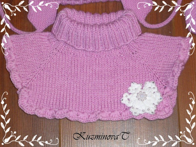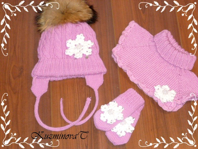 Связала наконец своей принцессе тёпленький комплект на зиму. Шапочка двойная с подворотом и ушками,варежки тоже двойные,манишка в две нити.Пряжа итальянский меринос,руку в шапку засунула,прям печка.