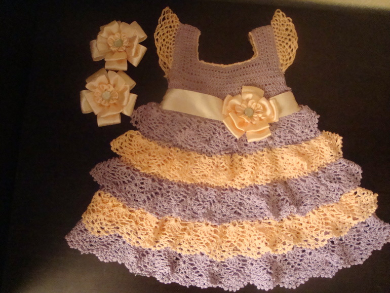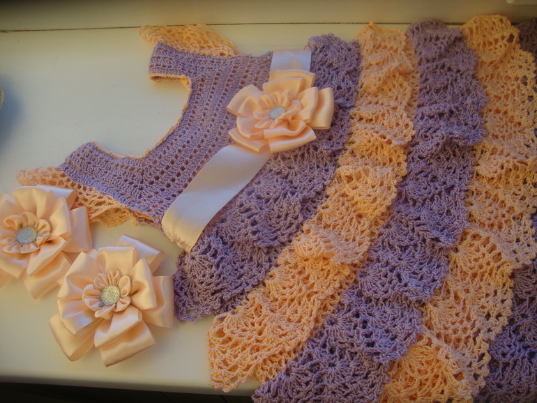 Хорошенькая девочка, замечательное платье! Очень удачное сочетание цветов, на мой взгляд. И бантики тоже отличные, и не скажешь, что первые!