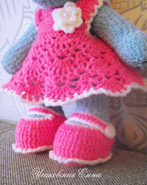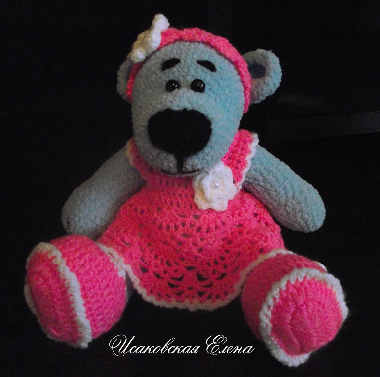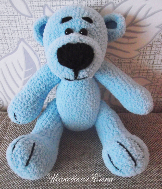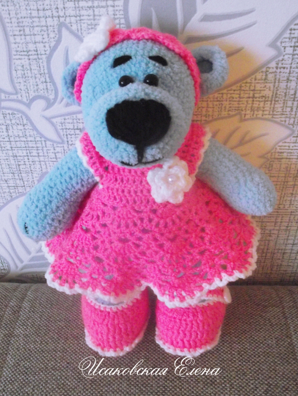 Мишутка, связан крючком из мягкой плюшевой пряжи. Пряжа Ализе Софти. Одежда снимается. Рост 25 см.