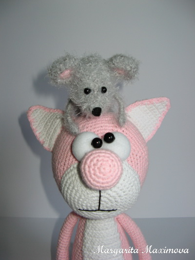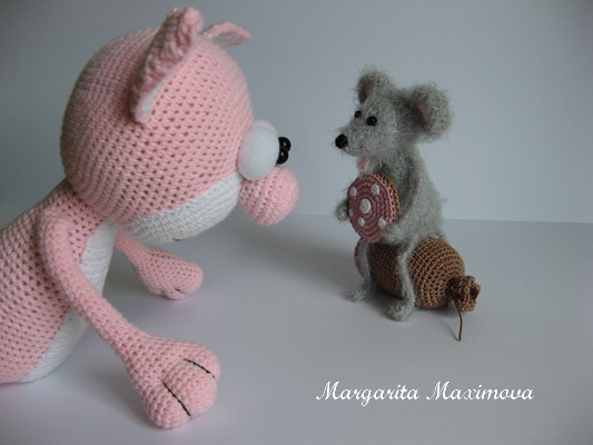 Игрушечный мир - животныеВот такую компанию связала на днях. Котика продаю, а мышка пойдет подарком к родственникам( хочу посадить ее тайком к ним в холодильник:)))