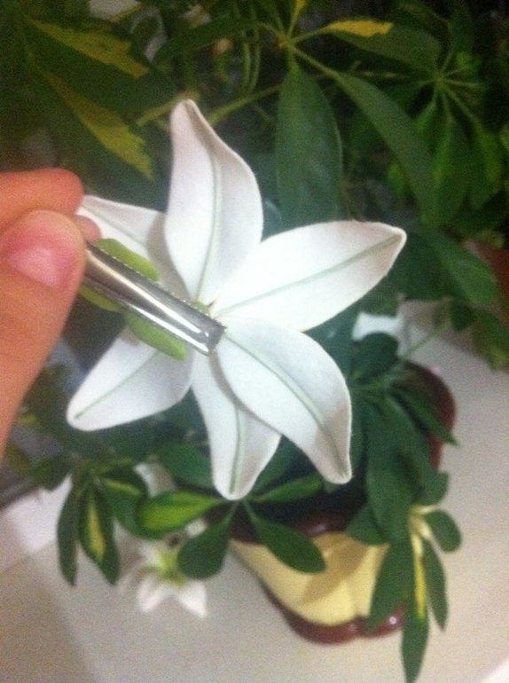 всем привет! начала лепить лилию,на лепестки с изнаночной стороны приклеиваю проволоку,обкатанную глиной.но изнанка уж очень мне не нравится,посоветуйте как сделать лучше(масляные краски использовать не хочу,но как вариант тоже посмотрю). пришлите фото ваших изнаночных сторон))