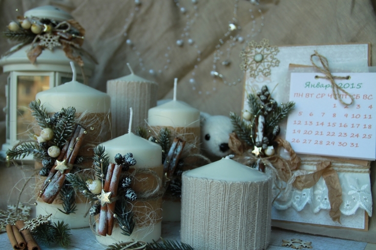 Две свечки я одела в теплые свитера, зима ведь))