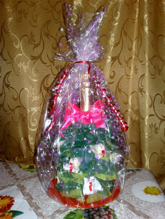 Тут фунтики и с фетром и с органзой!А вообще,в наличии есть елки только с органзой.